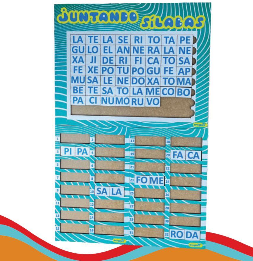 O juntado sílabas tem como objetivo montar palavras com duas sílabas. Desenvolve a memória visual, atenção e compreensão da escrita.